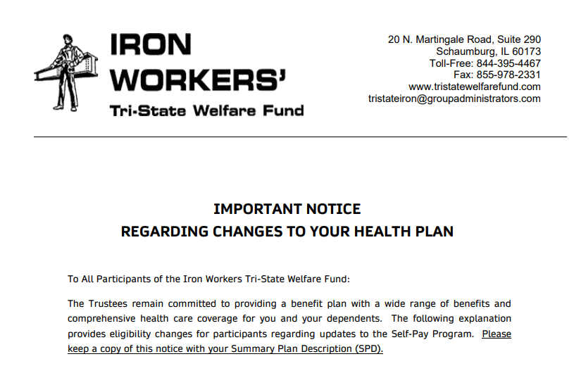 To All Participants of the Iron Workers Tri-State Welfare Fund: